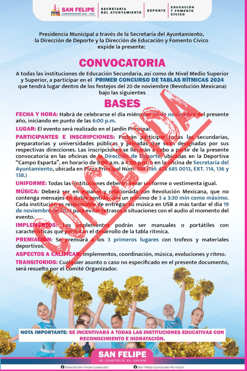 Para las Unidades y Espacios Deportivos del Municipio de San Felipe, Guanajuato.